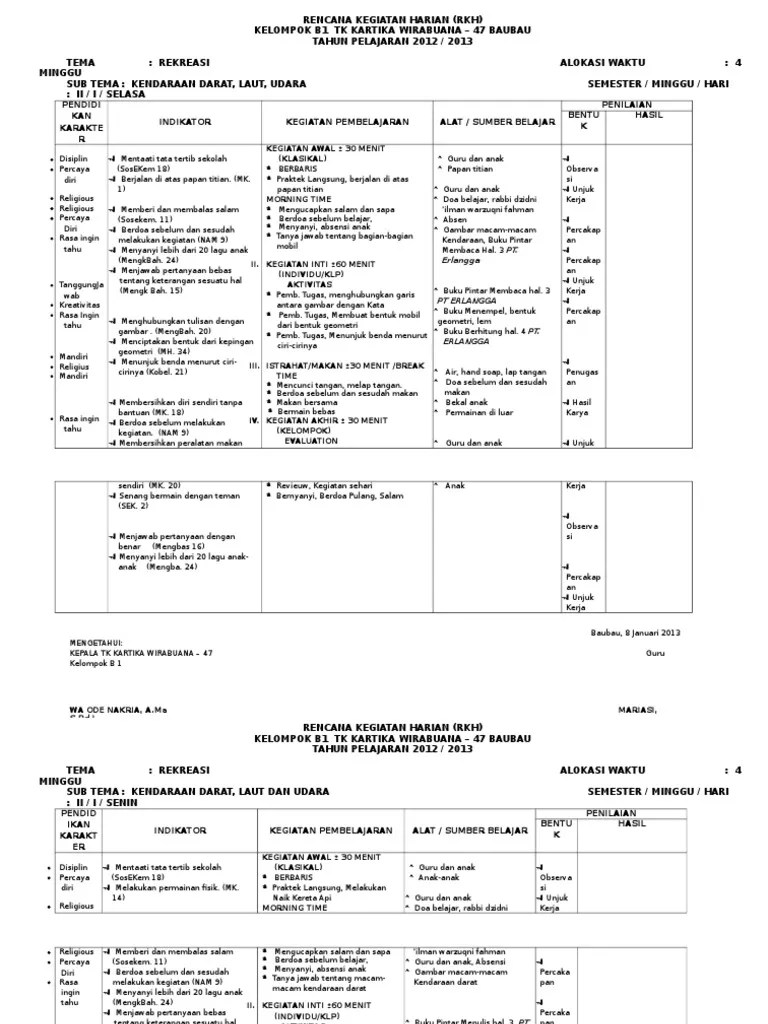 Tki waladun sholih tema/sub tema : Rencana pelaksanaan pembelajaran harian (rpph). Rencana program pembelajaran harian (rpph) model kelompok dengan pengaman tk : Minggu ke 17 adalah sub tema gejala alam yang dijabarkan menjadi fokus pembelajaran yaitu hari senin banjir, hari selasa siang dan malam, hari rabu gunung . Rencana pelaksanaan pembelajaran harian (rpph).